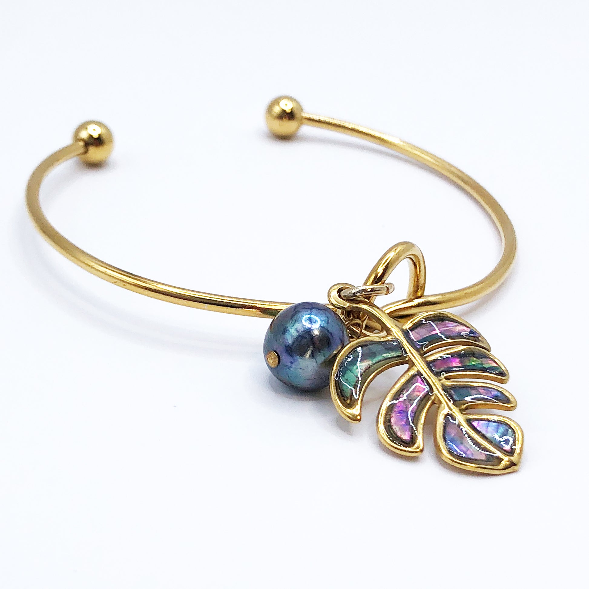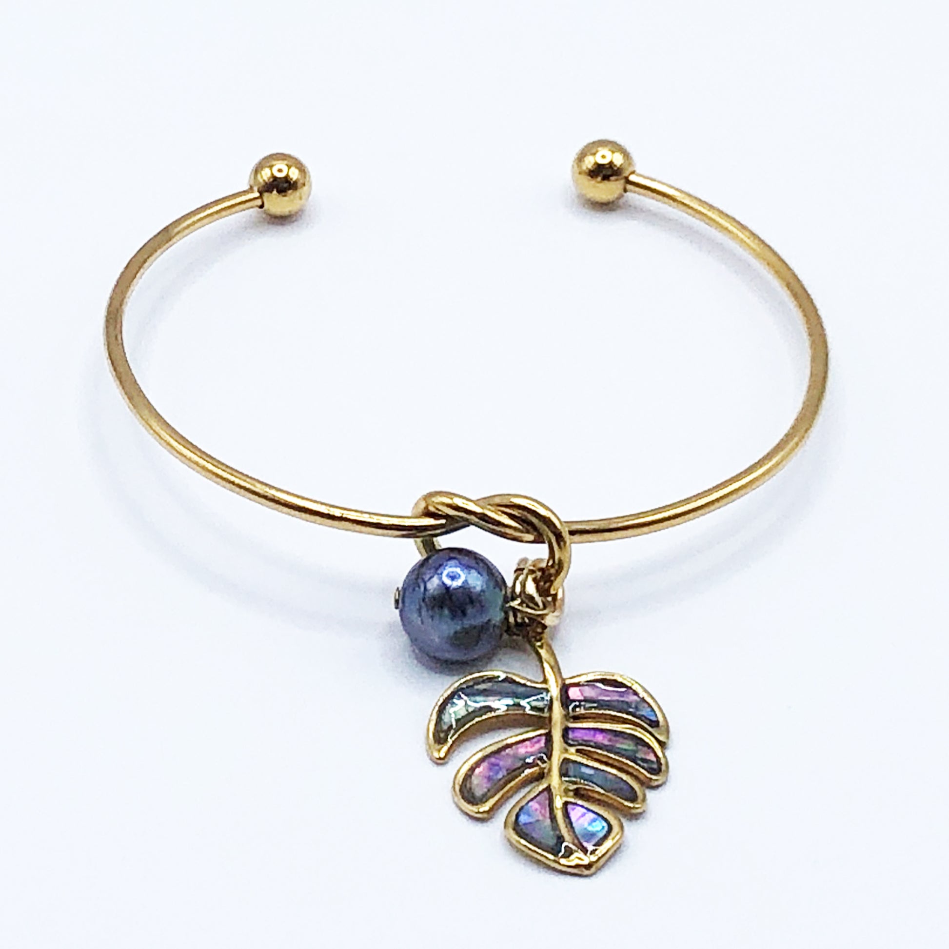 ラウンドブレスレット (モンステラ : ブルー)