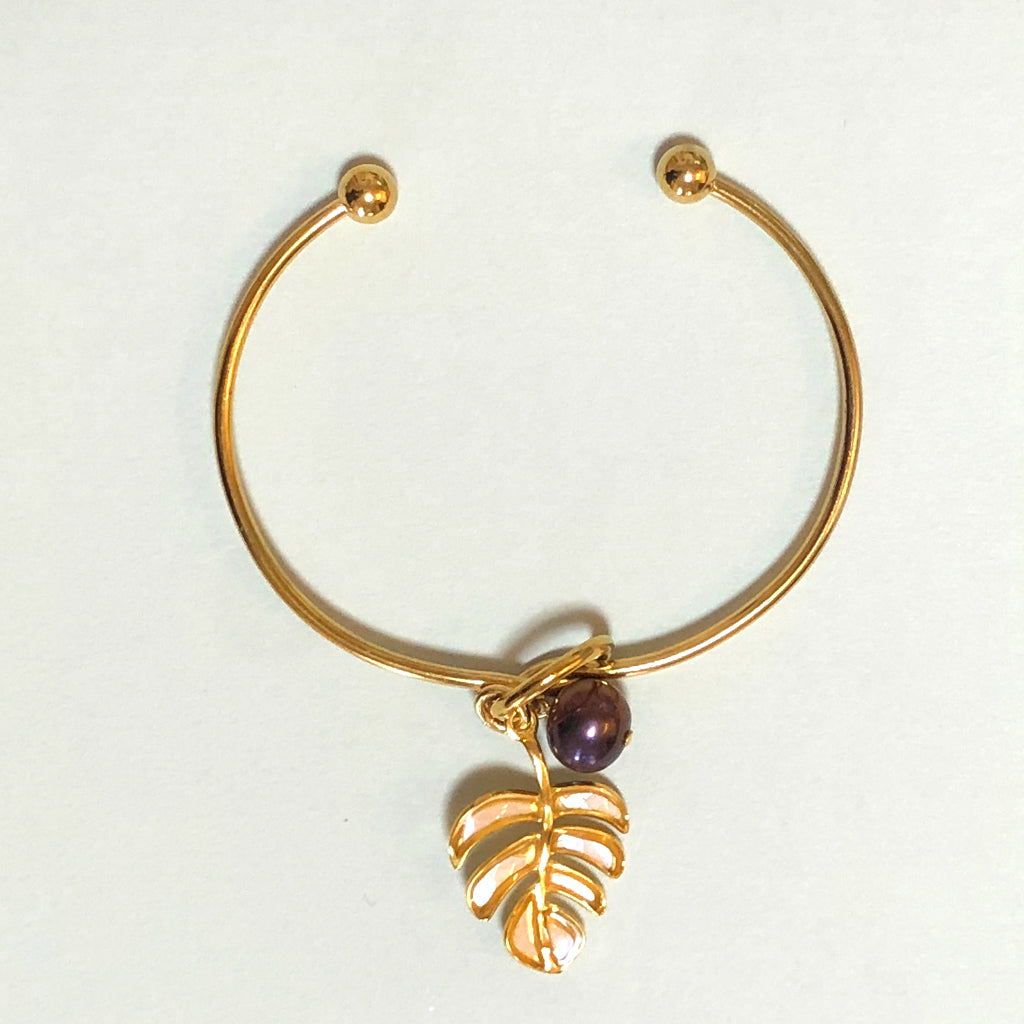 ラウンドブレスレット (モンステラ : ホワイト)