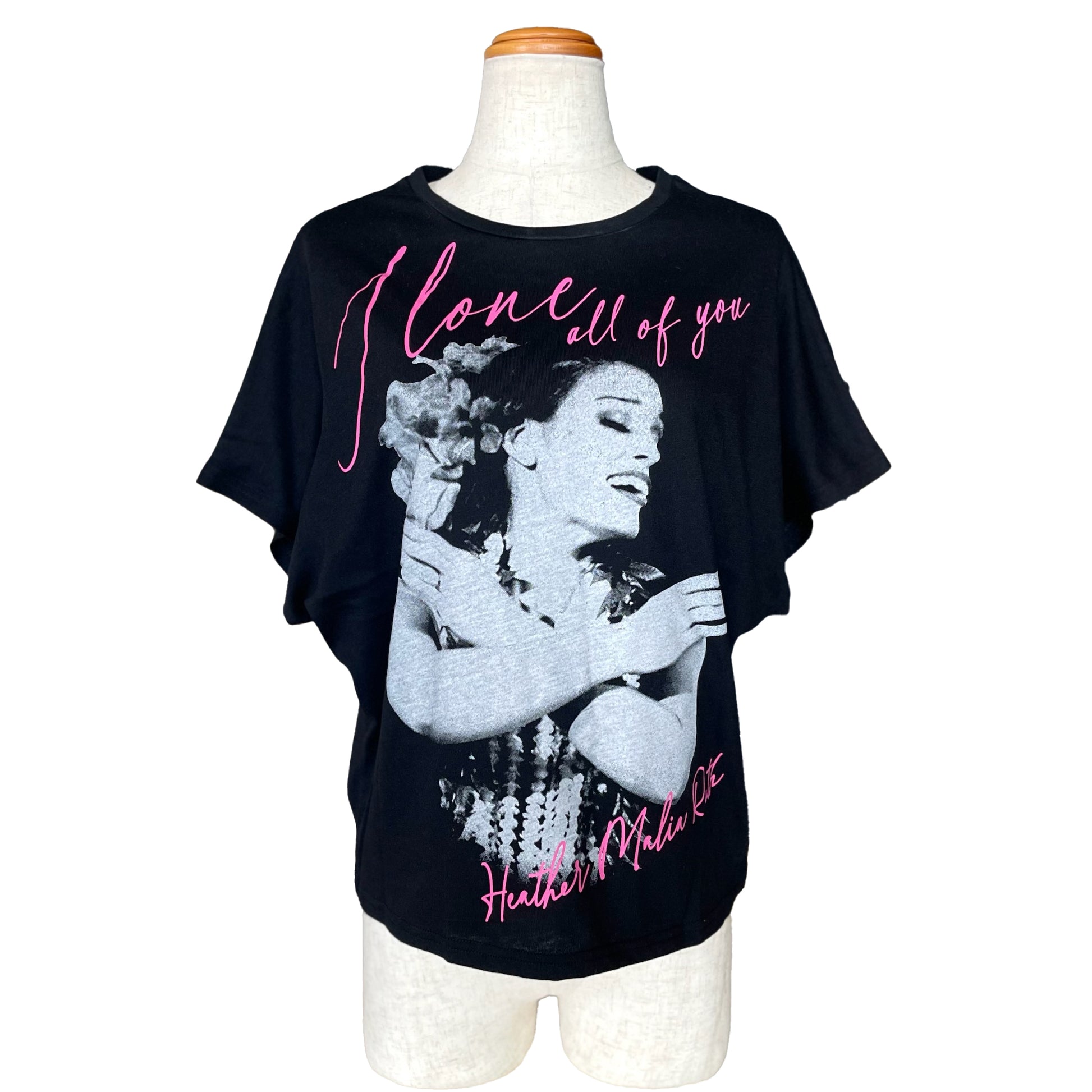 ヘザーマリヤルースの深い愛を表現し、彼女からのメッセージ (I love oll of you )とプリントされたオリジナル記念レッスンTシャツです。またゆとりあるサイズ感と上質生地でさらっとした滑らかな肌触りは着心地抜群!レッスンでも快適な心地よさを体感できます!美シルエットで、ゆとりの立体感とドルマンスリーブは踊りやすく、しかも体型をキレイに魅せてくれます!